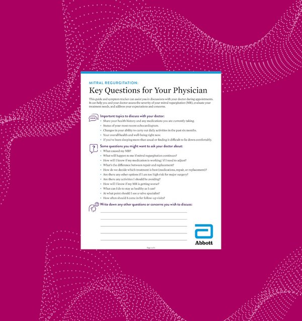 If your mitral regurgitation symptoms are interrupting your daily life, download this discussion guide to prepare for your next doctor’s appointment.